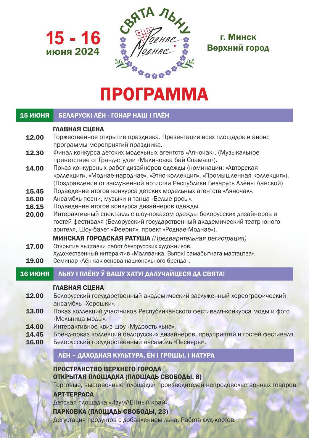 15-16 июня 2024 года в г.Минск Республики Беларусь состоятся мероприятия под общим названием «СВЯТА ЛЬНУ. РОДНАЕ МОДНАЕ».