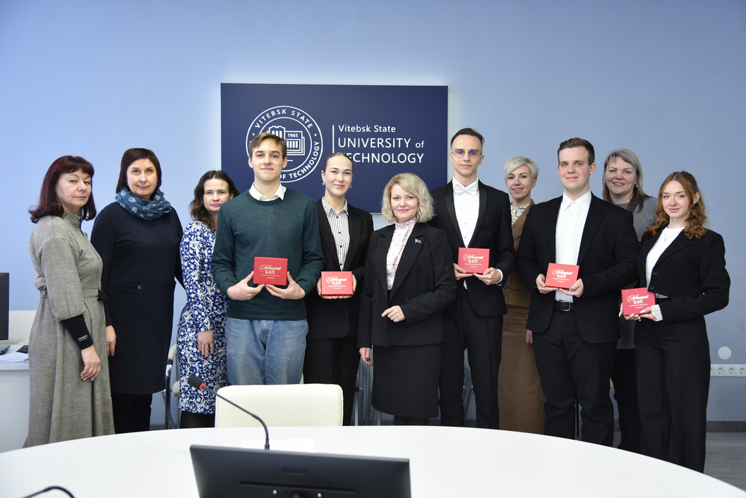 16 февраля 2026 года в Витебском государственном технологическом университете состоялась торжественная церемония вручения памятных сувениров участникам Республиканского Новогоднего бала. Проректор по идеологической и воспитательной работе Башкова Людмила Николаевна вручила подарки обучающимся, удостоившимся чести присутствовать на знаковом событии в декабре прошлого года.