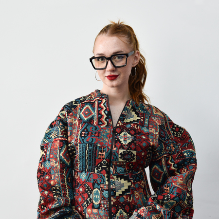 «Для меня этот показ не просто сдача учебного проекта. Это переход от теории к практике. Когда видишь, как твои эскизы оживают на подиуме, под музыку и вспышки камер – это волшебно. Очень волнительно наблюдать за реакцией зала, слышать аплодисменты. Меня вдохновила концепция «Бохо-стиля». Я брала за основу эстетику старых показов и образов людей на улице. Мне хотелось передать эту смесь современного и традиционного, поэтому в коллекции много необычных текстур и трансформаций материалов. В моей коллекции, с одной стороны, строгие и почти архитектурные силуэты, отсылающие к упорядоченности. С другой – рваные края, наложенные друг на друга принты, как на испорченной цифровой фотографии. Такие мероприятия – самый важный и практический этап обучения. Они учат управлению проектами, работе в команде (со стилистами, визажистами, моделями), тайм-менеджменту и, самое главное – самопрезентации».