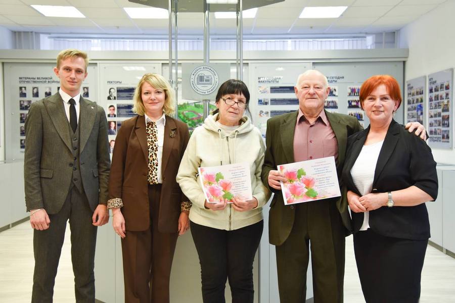 Председатель Совета ветеранов Бугаева Марина Тадеушевна, председатель ПО ОО БСЖ Ульянова Наталья Вячеславовна, заместитель декана по идеологической и воспитательной работе ФД Тихонова Жанна Евгеньевна поздравили с Днем Победы ветерана Великой Отечественной войны Когана Александра Григорьевича, малолетних узников Матюшевскую Надежду Михайловну, Нестерову Алину Фёдоровну, Демиденок Нину Ивановну.