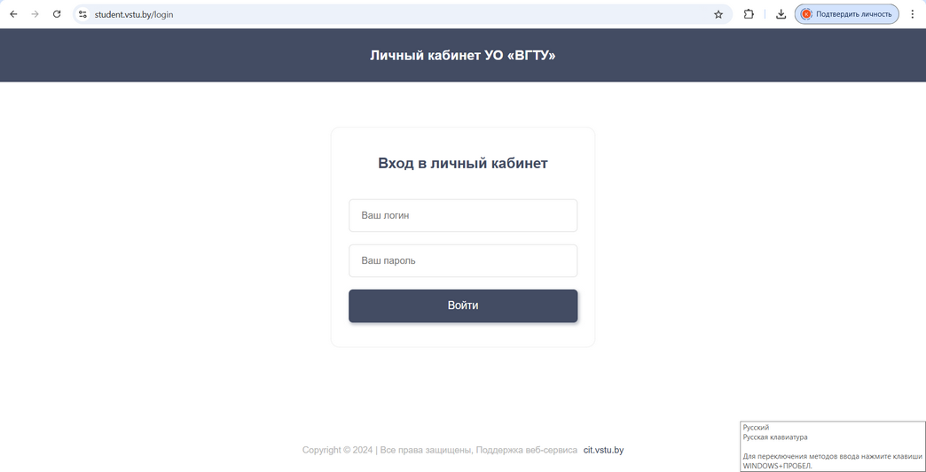 Доступ в личный кабинет можно получить по ссылке https://student.vstu.by.