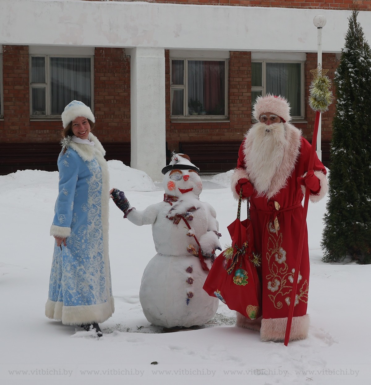 Взмах красной рукавицы – и вот уже Дед Мороз появился из серебристого воздуха. Может, по волшебству он перенесся из Великого Устюга или из Лапландии, где гостил у финского родича Йоулупукки? Постойте, да он же из «Витьбичей»! Многие витебчане знают, что редакционный Дед Мороз существует и перед Новым годом совершает вояж со Снегурочкой. А вот и она! Взмах серебристой рукавички – и рядом с Белобородым волшебником появилась внучка. Может, из самого Берендеева царства, а может, из легких саней, что быстрее ветра.