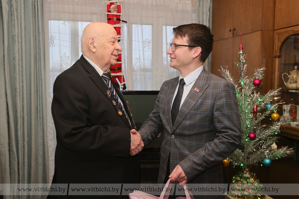 Так, участника Великой Отечественной войны, заслуженного ученого и просто замечательного и неравнодушного человека Александра Когана поздравили с наступившим 2024 годом и предстоящим Рождеством Христовым заместитель председателя Витебского горисполкома Виктор Глушин, представители управления по труду, занятости и социальной защите горисполкома и ТЦСОНа Октябрьского района нашего города.