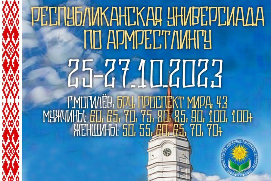 С 25 по 27 октября на базе Белорусско-Российского университета пройдут соревнования Республиканской универсиады - 2023/2024 по армрестлингу. Участие в соревнованиях примут 32 команды учреждений образования Республики Беларусь, среди которых команда ВГТУ