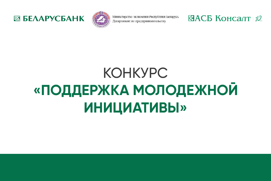 Министерство экономики Республики Беларусь совместно с ОАО «АСБ Беларусбанк» и ООО «АСБ Консалт» при поддержке Министерства образования Республики Беларусь объявляет о старте конкурса на лучшую бизнес-идею, бизнес-проект «Поддержка молодежной инициативы». Цель конкурса – популяризация предпринимательской деятельности среди молодежи, выявление и поощрение творческих, инициативных студентов, повышение уровня профессиональной ориентации молодежи. Участниками конкурса могут стать студенты учреждений высшего образования Республики Беларусь, начиная с 3 курса дневной формы обучения, достигших совершеннолетнего возраста. Участие бесплатное