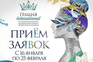 Государственное учреждение «Центр культуры «Витебск» и филиал «Центр национальных культур» объявляют о старте приёма заявок на участие в IV Открытом конкурсе национальных культур, творчества и красоты «ГРАЦИЯ INTERNATIONAL». К участию приглашаются студентки в возрасте от 18 лет до 31 года, которые представляют национальные культуры, землячества, этнические группы. Участниц ждут традиционные конкурсные испытания: национальное блюдо, конкурс ораторского мастерства, творческий конкурс, конкурс дефиле и конкурс группы поддержки