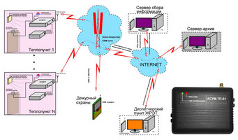 Предназначена для автоматизированного снятия показаний с приборов учета тепла, организации охранной и пожарной сигнализации на объектах учета. Передача данных осуществляется по каналу GSM/GPRS. Включает аппаратное и программное обеспечение собственного производства.