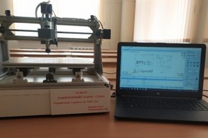 Имеет компоновку вертикально-фрезерного станка с ЧПУ. Оснащен направляющими скольжения и электрическим приводом на основе гибридных шаговых двигателей. Вращение осевого инструмента, установленного в цанговый патрон, обеспечивается двигателем шпинделя. Плата управления станка с драйверами смонтирована в станине. Для управления станком-стендом используется программное обеспечение для персонального компьютера (ПК) с операционной системой Windows, подключение станка к ПК осуществляется посредством интерфейса USB.