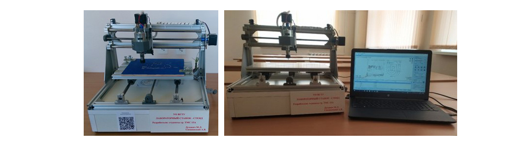 Имеет компоновку вертикально-фрезерного станка с ЧПУ. Оснащен направляющими скольжения и электрическим приводом на основе гибридных шаговых двигателей. Вращение осевого инструмента, установленного в цанговый патрон, обеспечивается двигателем шпинделя. Плата управления станка с драйверами смонтирована в станине. Для управления станком-стендом используется программное обеспечение для персонального компьютера (ПК) с операционной системой Windows, подключение станка к ПК осуществляется посредством интерфейса USB.
