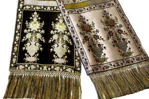 Разработаны структуры, рисунки и технологии изготовления портьерных двухслойных жаккардовых тканей с двухсторонним рисунком. Оригинальность заключается в новых подходах к оформлению декоративных тканей, предназначенных для изготовления портьер, в нетрадиционных принципах построения двухслойных структур, в совмещении новых подходов к ритму цветного снования с целью получения большого количества оттенков, как на лицевой, так и на изнаночной сторонах ткани.