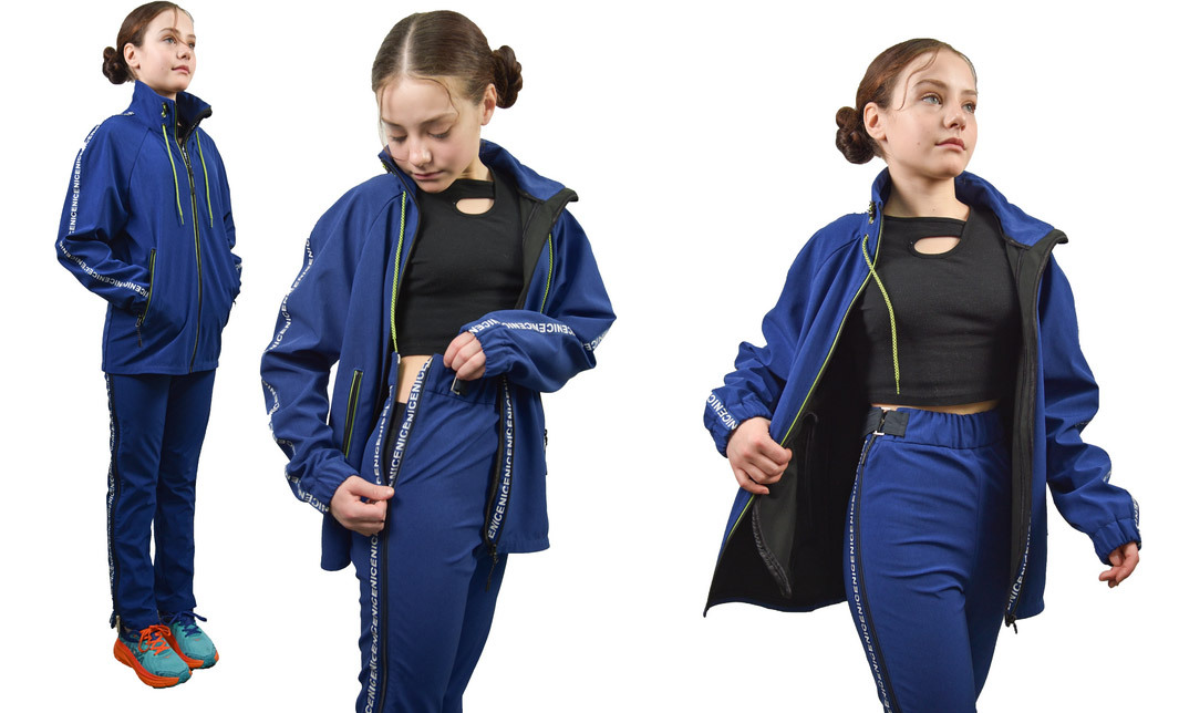 Костюм для мальчиков и девочек (унисекс) среднего школьного возраста для занятий спортом, состоящий из куртки и брюк-самосбросов. Предназначен для ношения поверх комбинезона лыжника и биатлониста с целью согревания спортсмена в период между стартами при температуре до минус 15 °С. Для одевания и снятия брюк не требуется снимать лыжи и лыжные ботинки, поскольку брюки полностью расстегиваются по боковым сторонам. Изделия выполнены из эластичного трехслойного мембранного материала на трикотажной основе и имеют ворсовую изнаночную сторону. Применение самосбросов исключает контакт необутых ног ребенка со снегом и льдом при переодевании между стартами в условиях открытой лыжной трассы, что снижает риск простудных заболеваний. Костюм протестирован в аккредитованной лаборатории на соответствие требованиям ТР ТС 007/2011.