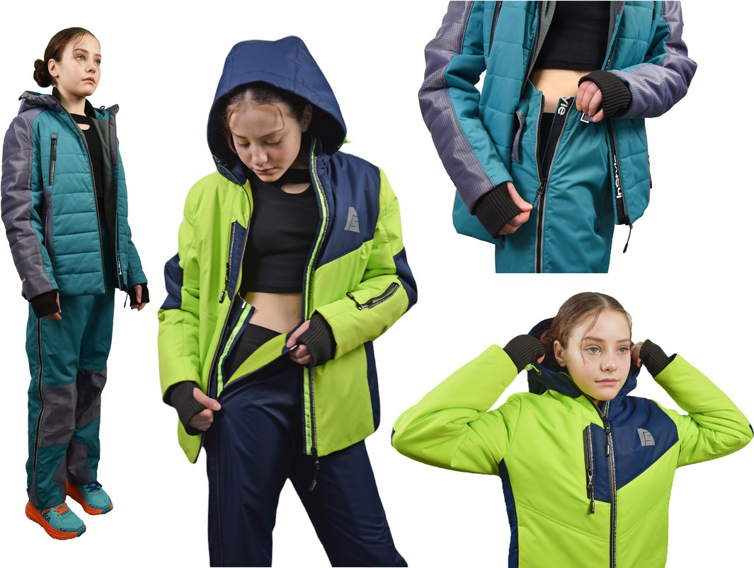 Проект выполнен в рамках внутривузовского студенческого гранта №117 «Разработка конструкции и технологии изготовления экипировки биатлониста из композиционных материалов». Костюм утепленный для мальчиков и девочек (унисекс) среднего школьного возраста, состоящий из утепленной куртки и утепленных брюк-самосбросов. Предназначен для ношения поверх комбинезона лыжника и биатлониста с целью согревания спортсмена в период между стартами при температуре ниже минус 15 °С. Для одевания и снятия брюк не требуется снимать лыжи и лыжные ботинки, поскольку брюки полностью расстегиваются по боковым сторонам. Занимающиеся в спортивной секции дети могут использовать костюм как обычную бытовую зимнюю одежду, что исключает потребность в отдель¬ных предметах одежды и позволяет значительно снизить вес снаряжения, транспортируемого до места стартов. Применение самосбросов исключает контакт необутых ног ребенка со снегом и льдом при переодевании между стартами в условиях открытой лыжной трассы, что снижает риск простудных заболеваний.