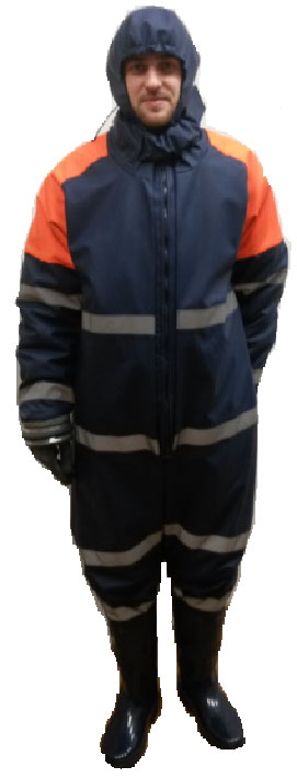 Комбинезон изготовлен из кожи искусственной поливинилхлоридной на трикотажной основе. Конструкция костюма обеспечивает возможность его использования со снаряжением, выполнения всех видов деятельности при проведении аварийно – спасательных работ. Высокие защитные, эксплуатационные и потребительские свойства костюма обеспечиваются его конструктивными особенностями.
