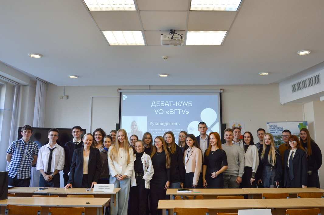 16 октября 2024 года в рамках реализации проекта «Всебелорусская республиканская Лига дебатов» в ВГТУ под руководством кандидата экономических наук, доцента Краенковой Кристины Игоревны прошел отборочный (вузовский) этап среди команд, которые в дальнейшем будут представлять наш университет на областном этапе. Проект является инициативой РОО «Белая Русь» и ежегодно объединяет молодежь по всей республике, которая обсуждает в форме дебатов актуальные вопросы белорусского общества.