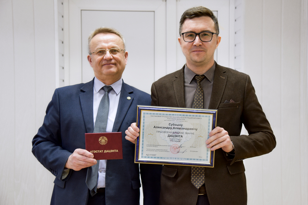 Субботину Александру Александровичу, заведующему кафедрой «Социально-гуманитарные дисциплины», кандидату исторических наук, вручен аттестат о присвоении ученого звания доцента по специальности «История».