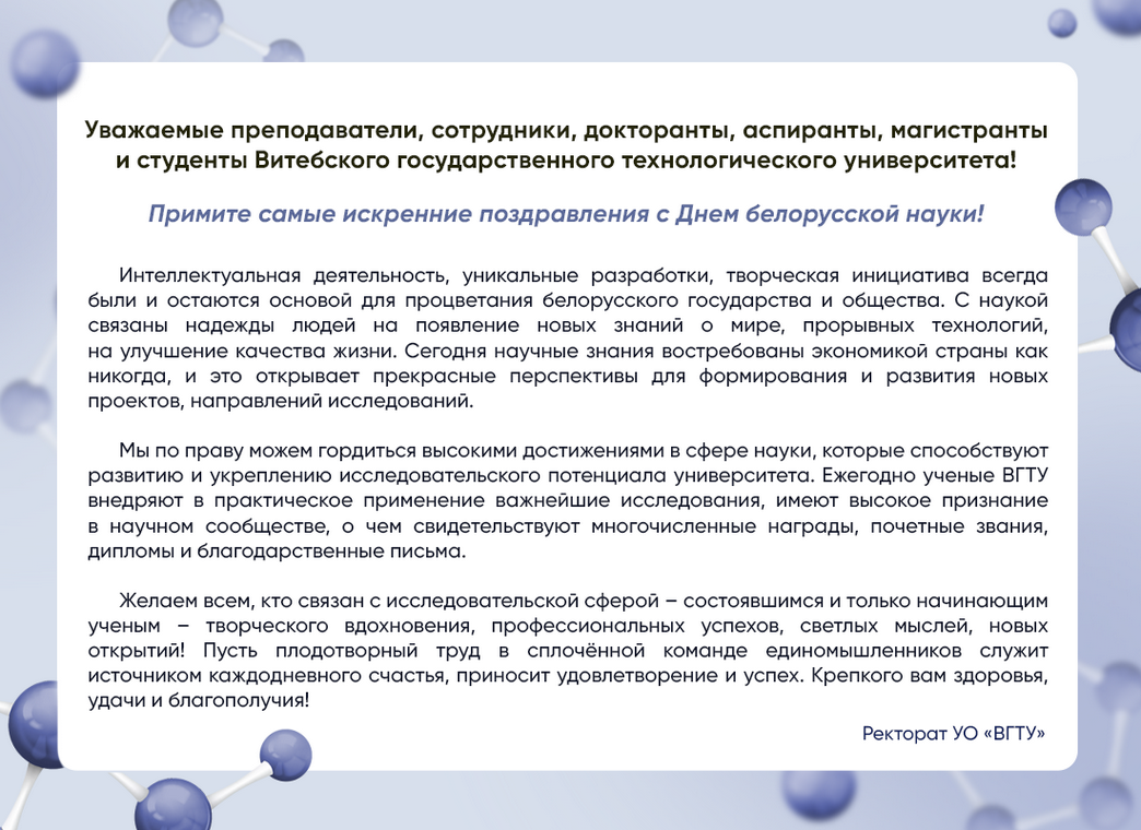 4. Поздравление ректората УО «ВГТУ» с Днем белорусской науки