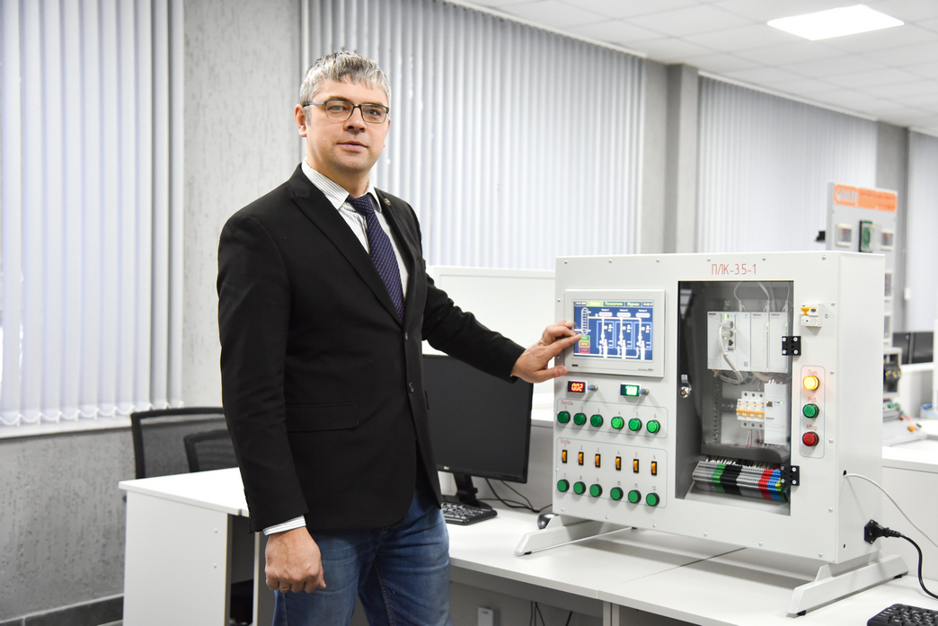 Науменко Андрей Михайлович, кандидат технических наук, доцент, заведующий кафедрой «Автоматизация производственных процессов», совместно с кафедрой «Информационные системы и технологии» (научный руководитель кандидат технических наук, заведующий кафедрой Казаков В.Е.) выполнил научный проект по разработке учебно-исследовательского стенда «Автоматизация технологических процессов на основе программируемого логического контроллера»