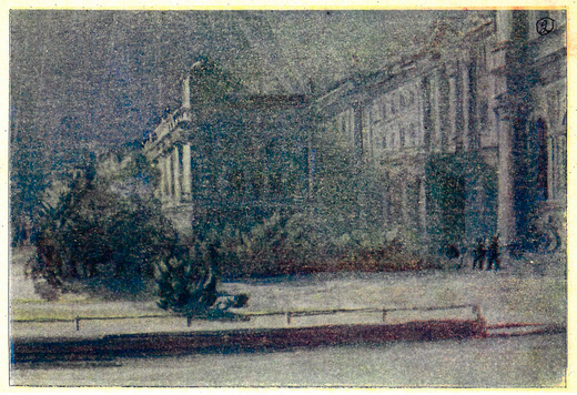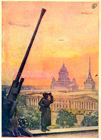«На снимке ленинградская боевая ночь. На небе лучи прожекторов.