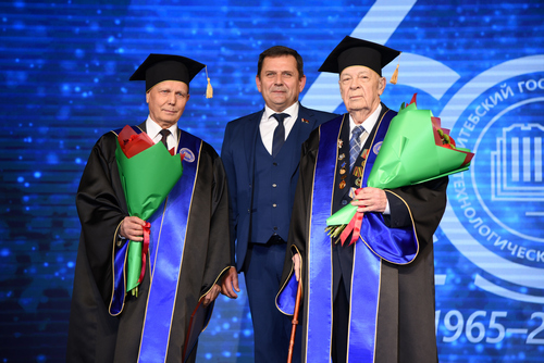 Хотелось бы сказать несколько слов нашим студентам, магистрантам и аспирантам. Ведь ваши научные разработки, инновационные проекты, победы в конкурсах и олимпиадах, творческие успехи в спорте и творчестве – это тот драйв, который позволяет университету двигаться вперед. Сегодня в этом зале в качестве почетных гостей присутствуют выпускники нашего первого выпуска 1970 года. Хотелось бы их поблагодарить за верность университету.