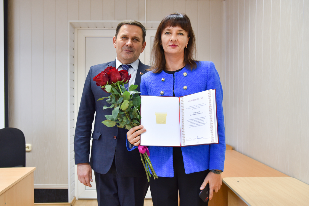 Скобовой Наталье Викторовне, доценту кафедры экологии и химических технологий УО «ВГТУ», вручено свидетельство специального фонда Президента Республики Беларусь по социальной поддержке учащихся и студентов о присуждении вознаграждения «За ўклад у падрыхтоўку здольнай моладзі» третьей степени за особый вклад в развитие способностей одаренных учащихся и студентов.