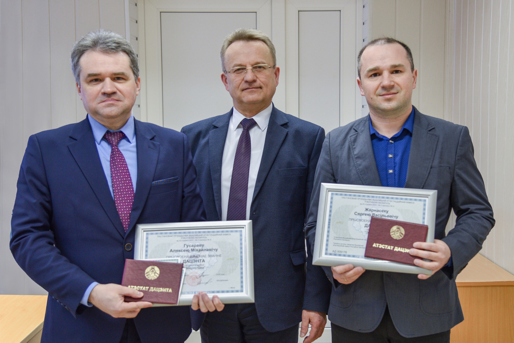 Гусарову Алексеею Михайловичу, кандидату технических наук, декану факультета информационных технологий и робототехники и Жерносеку Сергею Васильевичу, кандидату технических наук было присвоено ученое звание доцента по специальности «Энергетика».