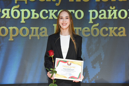 «Помню те незабываемые эмоции, когда я узнала об этом мероприятии и моем участии в нем. Сначала не верилось, потому что я считала, что только взрослые, работающие люди могут получить такое звание и могут быть занесены на доску Почёта. Но оказывается, студенты также могут получить такую возможность. Я горжусь собой, благодарна своему университету, своим родным за это достижение! Для меня это огромный стимул продолжать работать, творить и самосовершенствоваться. Уверена, дальше – больше!»