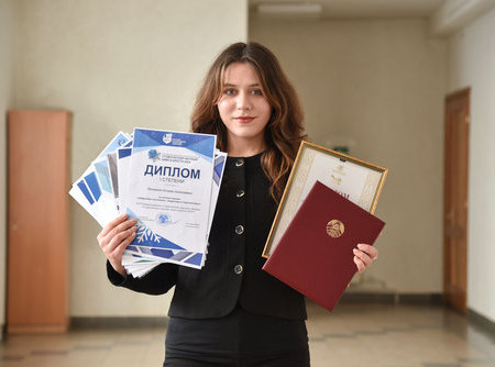 – Выступления – это моя отдельная любовь. Честно, основная подготовка для меня состоит в том, чтобы грамотно разобраться в материале, который я планирую рассказать. Я обычно не готовлю речь, стараюсь никогда не читать материал с листика. В основном работаю на импровизации, но всегда пару раз прогоняю выступление. Первым масштабным выступлением для меня стал финал конкурса научных работ по экономической тематике среди студентов, аспирантов и магистрантов в Национальном банке Республики Беларусь. Я тогда была на 2 курсе. Помню, что во время выступления решила выйти из-за кафедры и в более открытом положении рассказывать результаты своей работы. Сознание оставалось чистым и ясным, я даже немного шутила во время выступления.