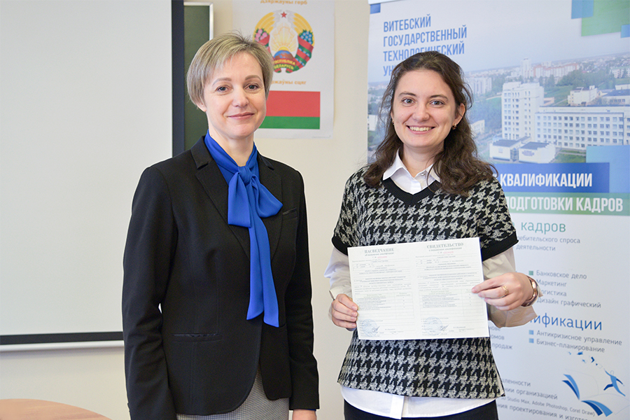 26 декабря 2023 г. проректор по учебной работе Петюль Ирина Анатольевна в торжественной обстановке вручила свидетельства повышения квалификации преподавателям университета, проходившим обучение по образовательной программе «Совершенствование профессиональной иноязычной речи преподавателя дисциплин нефилологического профиля»