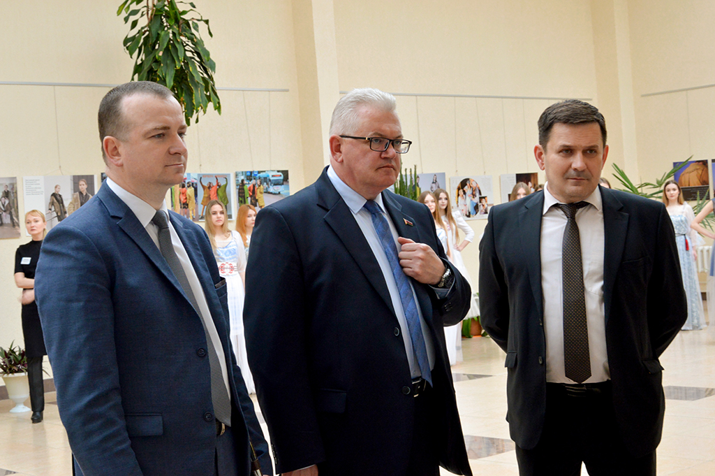 Министр ознакомился с выставкой работ студентов и преподавателей факультета дизайна Витебского государственного технологического университета, лабораторией обувного производства, Центром аддитивных технологий, лабораториями кафедры технологии текстильных материалов. Университет готовит профессиональных специалистов по профилю легкой и текстильной промышленности.