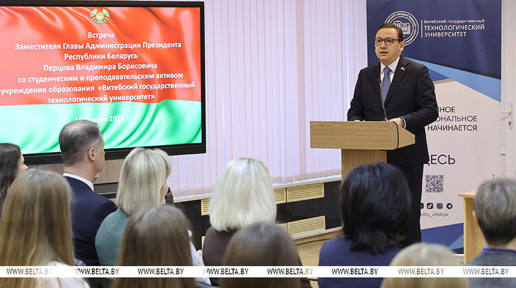 В чем отличие избирательных кампаний этого и прошлого года, почему важно идти на выборы - такие вопросы студенты Витебского государственного технологического университета (ВГТУ) обсудили на диалоговой площадке с заместителем главы Администрации Президента Беларуси Владимиром Перцовым, передает корреспондент БЕЛТА.