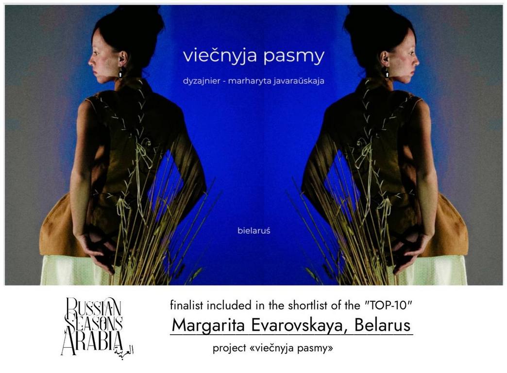 Маргарита представила на суд экспертов авторский монолук «viečnyja pasmy» («вечные нити»). Руководителем проекта выступил старший преподаватель кафедры дизайна и моды ВГТУ Никита Захарчук.