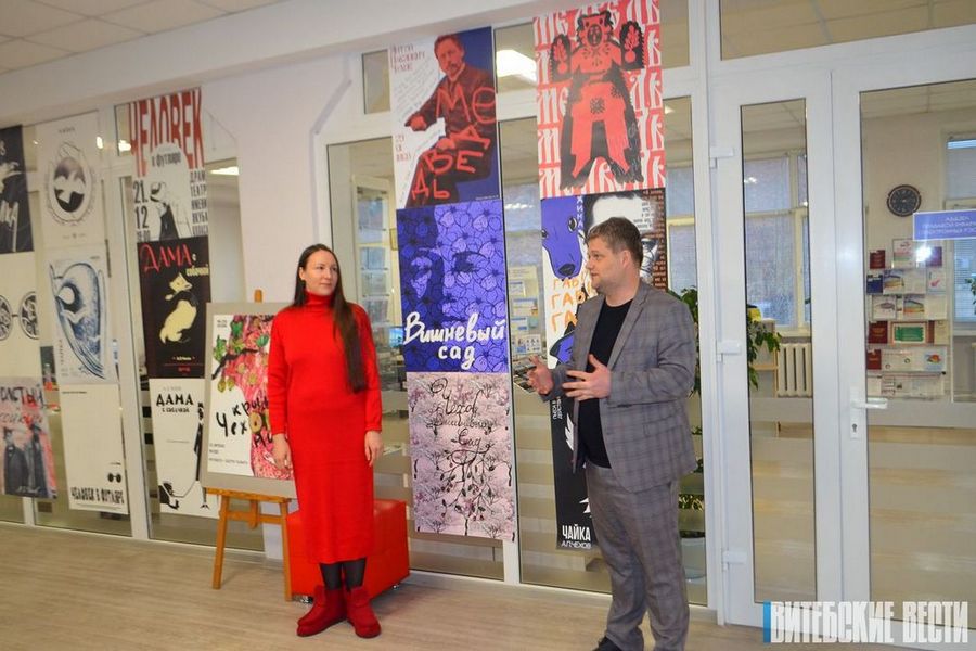 В Витебской областной библиотеке имени В. И. Ленина прошла презентация выставки театрального плаката студентов кафедры дизайна и моды «Чеховская палитра». Проведение выставки приурочено к 165-летию со дня рождения великого русского писателя и врача по профессии Антона Чехова. В наши дни его пьесы ставят и экранизируют не только в России, но и за рубежом, по всему миру. В зале редкой книги областной библиотеки можно увидеть и даже полистать в специальных перчатках редкие уникальные издания произведений А.П.Чехова